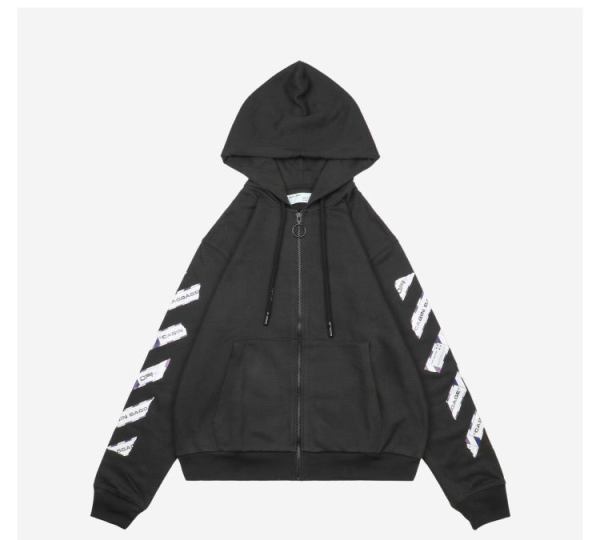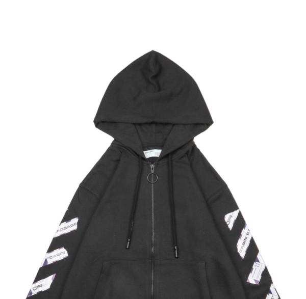 OW Airport Tape Zip Up Hoodie- Black